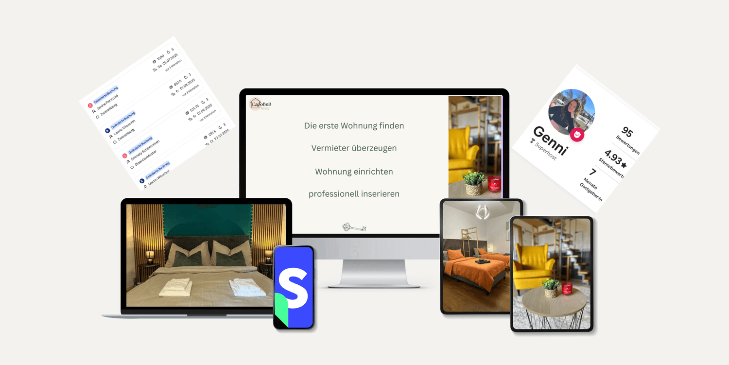 Im Frühjahr 2025 stand ich genau da, wo du heute bist. Ich wusste nicht, wie ich die erste Wohnung finden, einen Vermieter überzeugen und alles so einrichten sollte, dass Gäste buchen. Ich fühlte mich überfordert, mit 5 Jobs, unsicher und ständig blockiert..