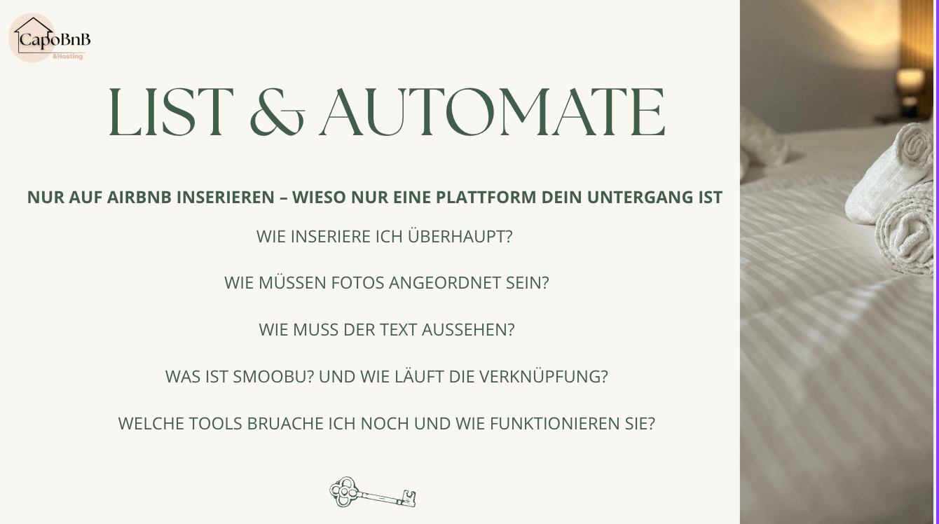 EIGENTLICHE FÜR JEDEN, der noch keine Airbnbwohnung hat. Noch kein Wissen und von NULL startet.